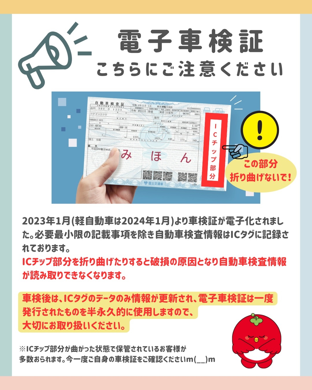車検証ケースに収納される際など、お気を付けくださいね☺