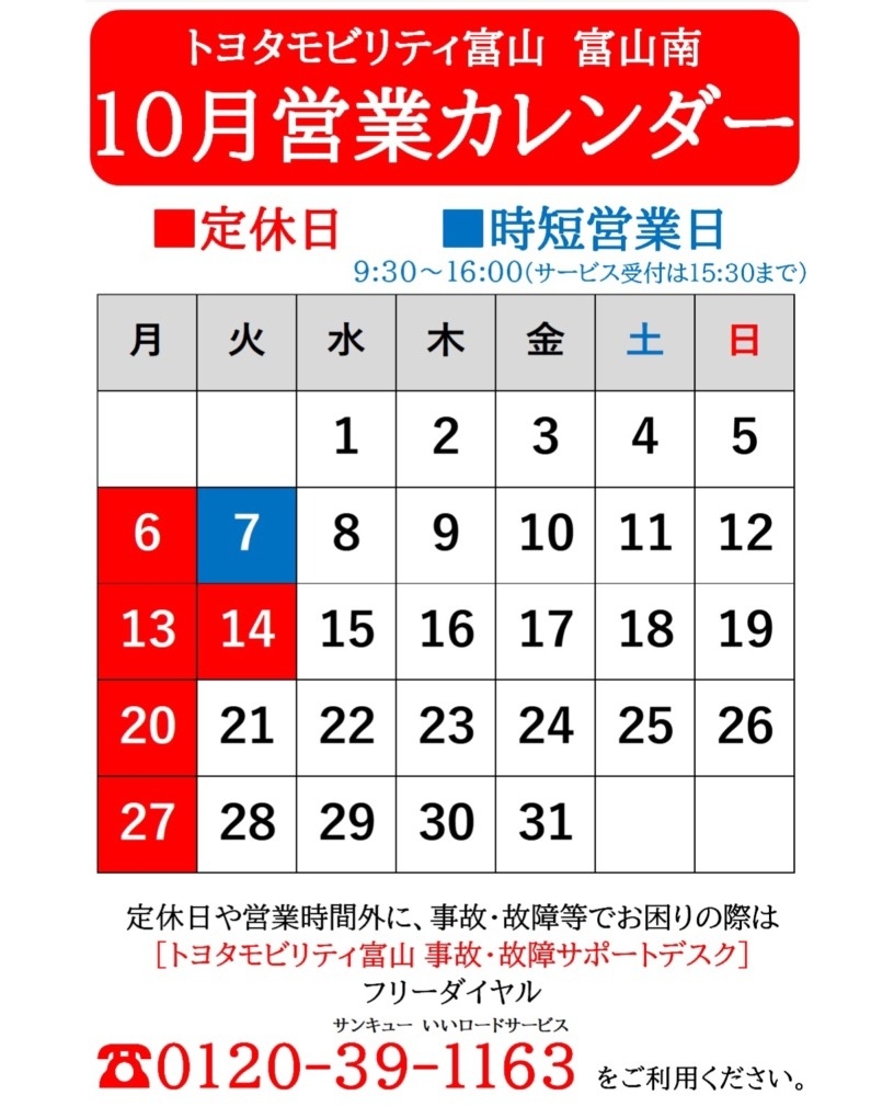 富山南は10月も元気に営業します!