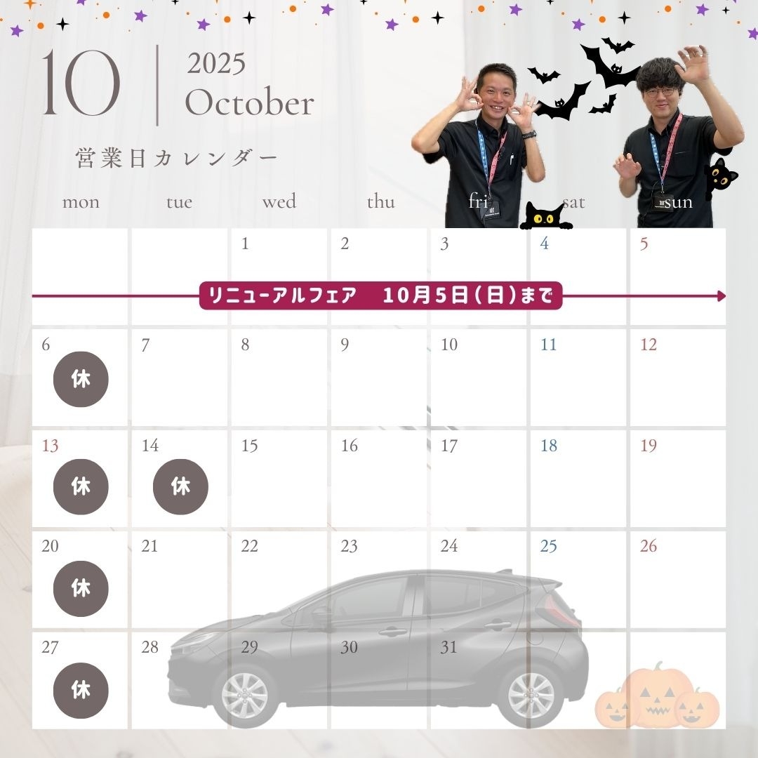 10月の営業日カレンダーです🎃