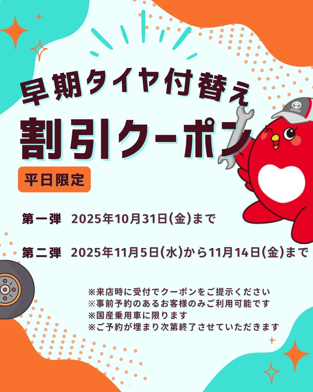 今年もタイヤ早期付け替えクーポンをプレゼント🎁