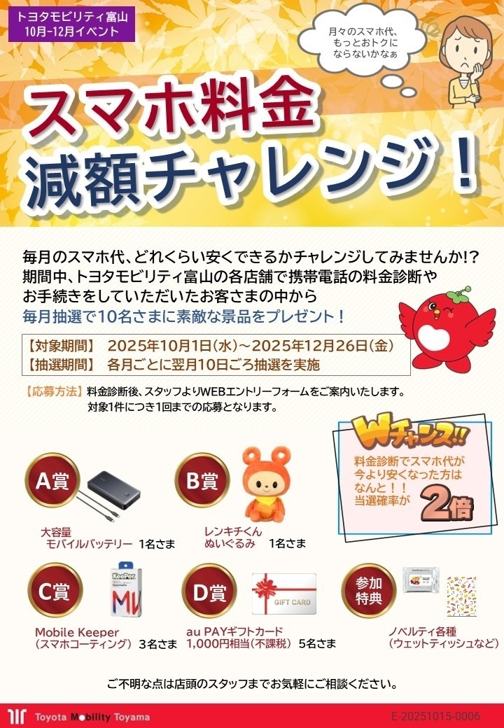 トヨタモビリティ富山では「スマホ減額チャレンジ」を実施中です!!