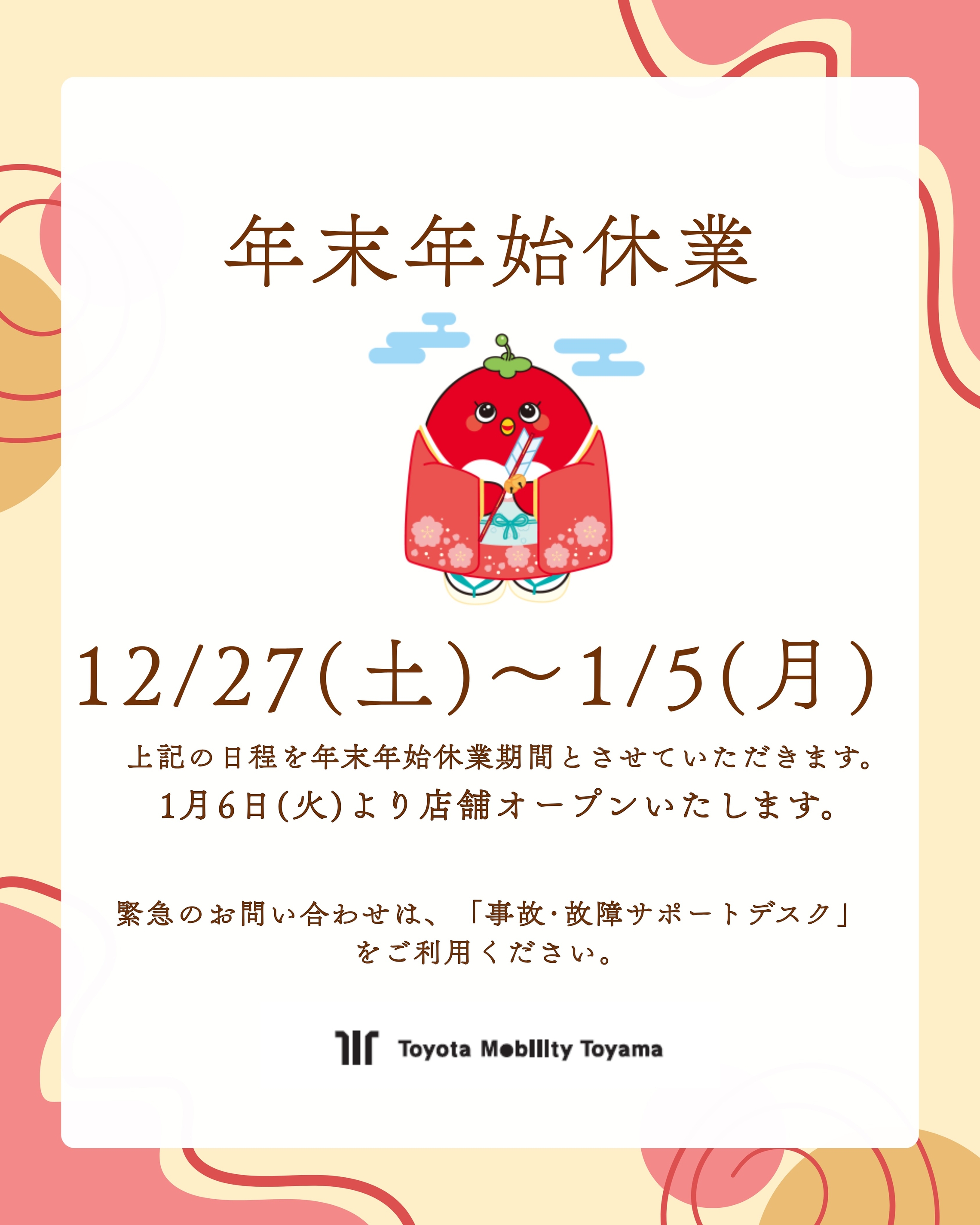 ▪️2024年12月27日(土)~2025年1月5日(月)