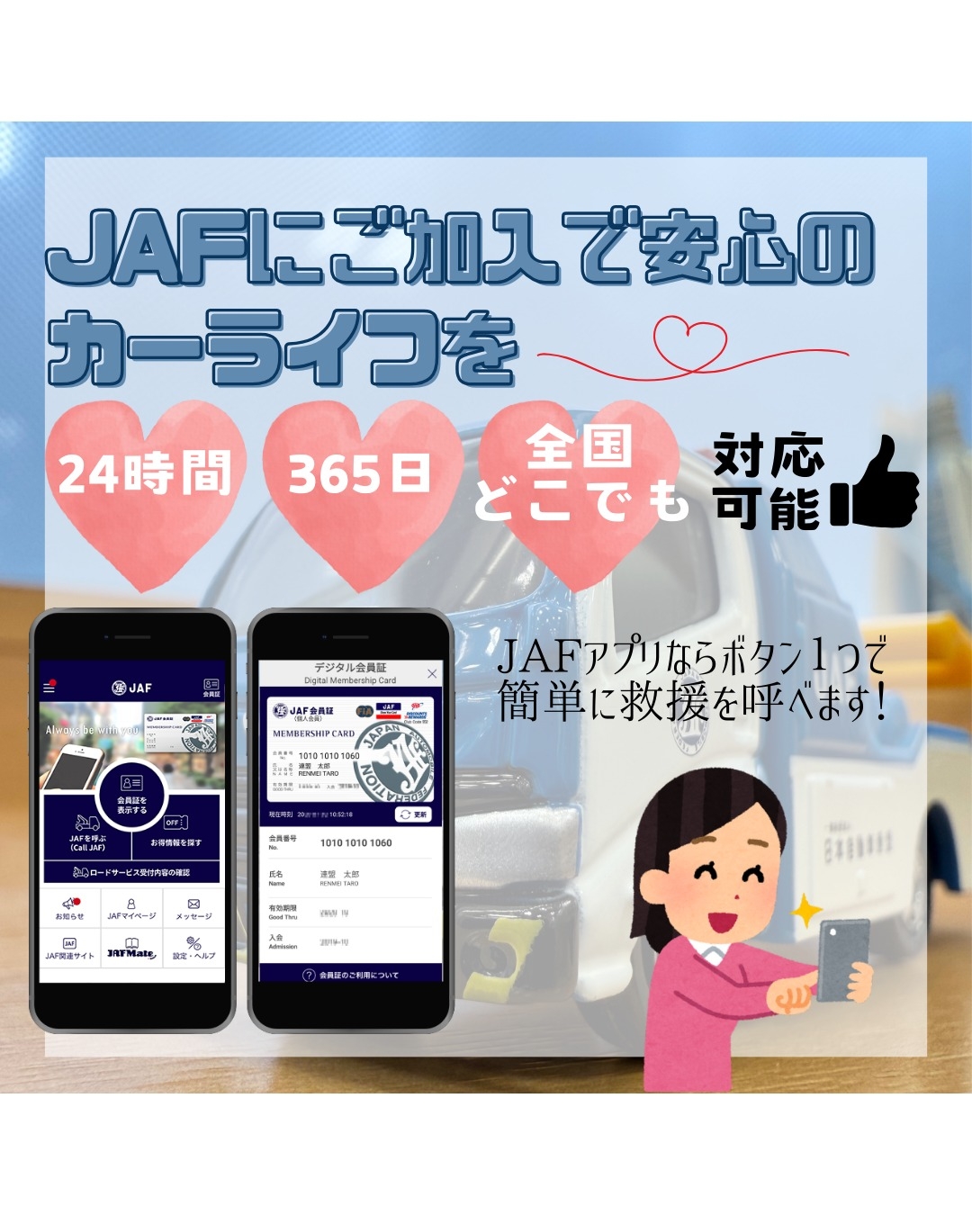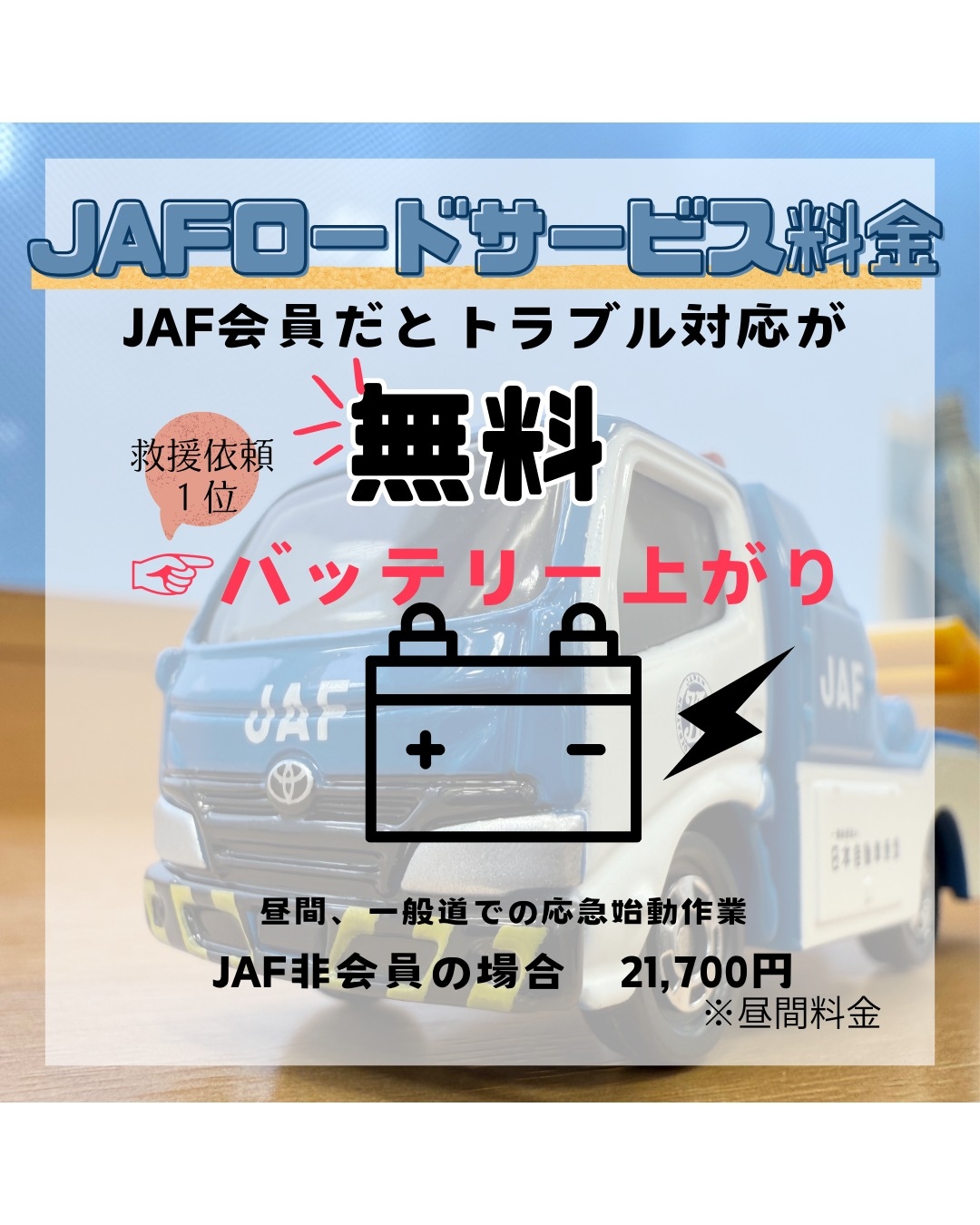 会員ならバッテリーあがりやパンク、キー閉じこみ、燃料切れ、事故や故障でのけん引・搬送作業など、