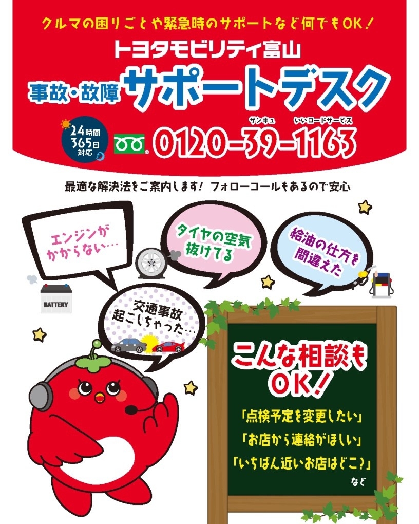 【トヨタモビリティ富山 事故・故障サポートデスク】