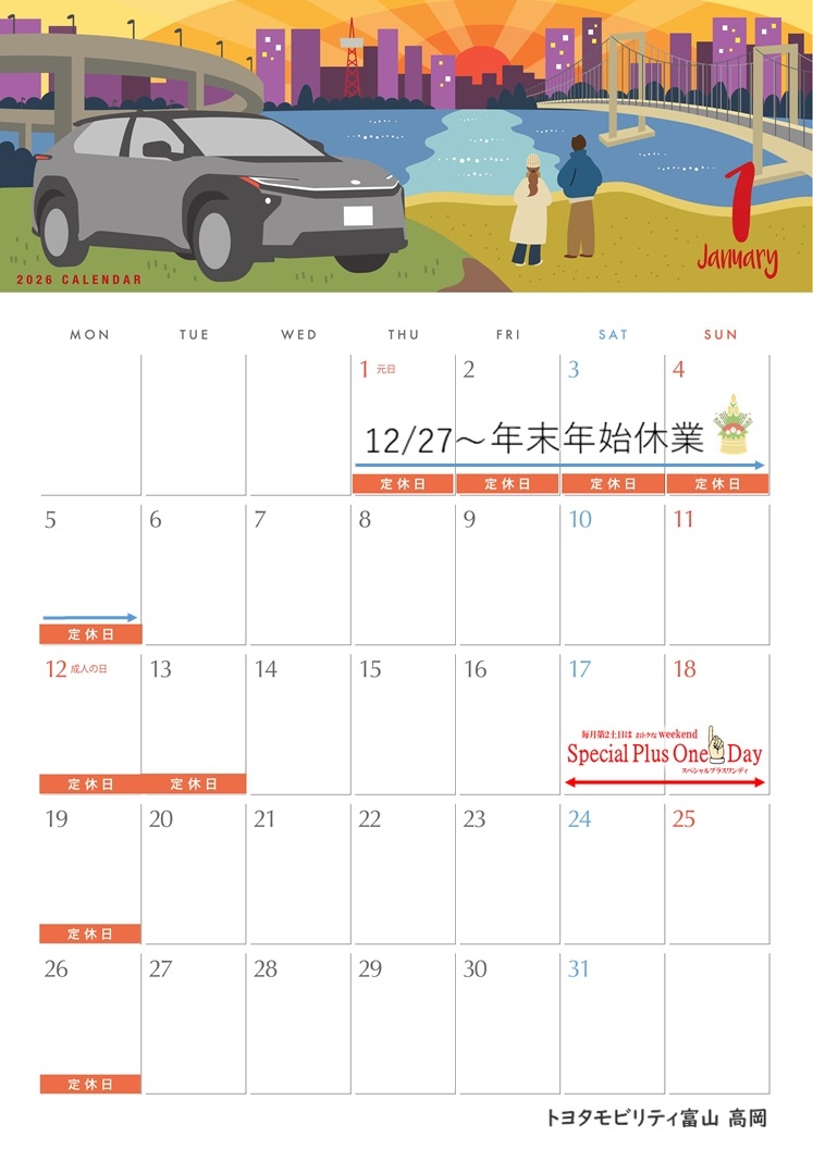 【高岡】1月営業カレンダーのご案内📅