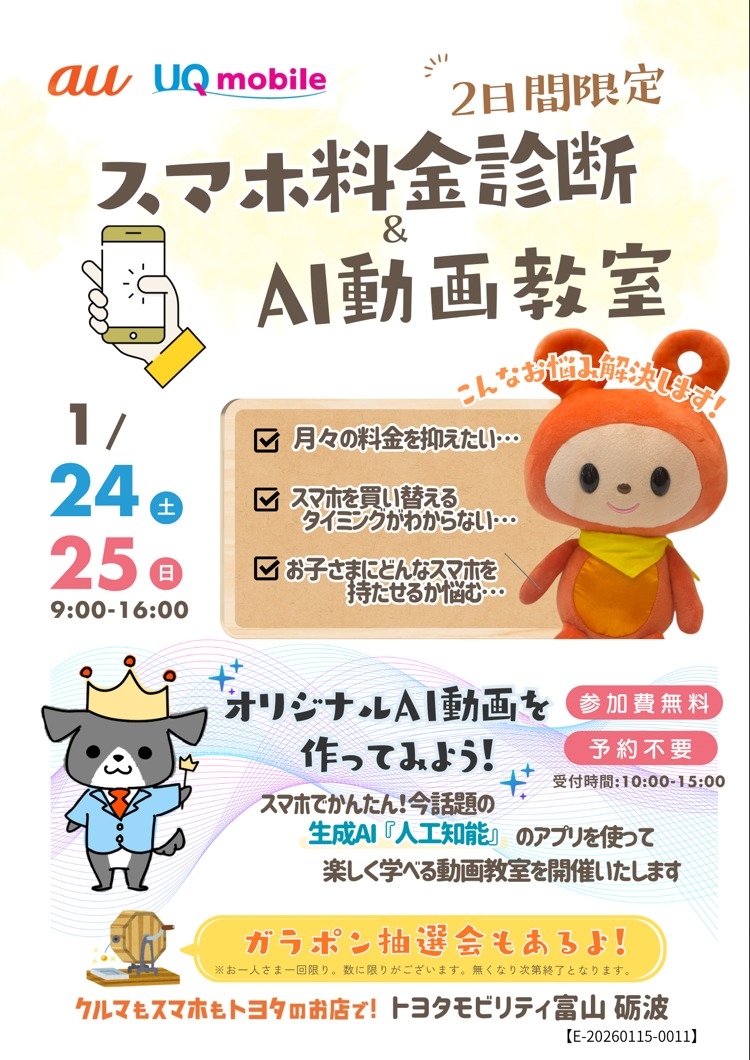 トヨタモビリティ富山 砺波からのお知らせです📢