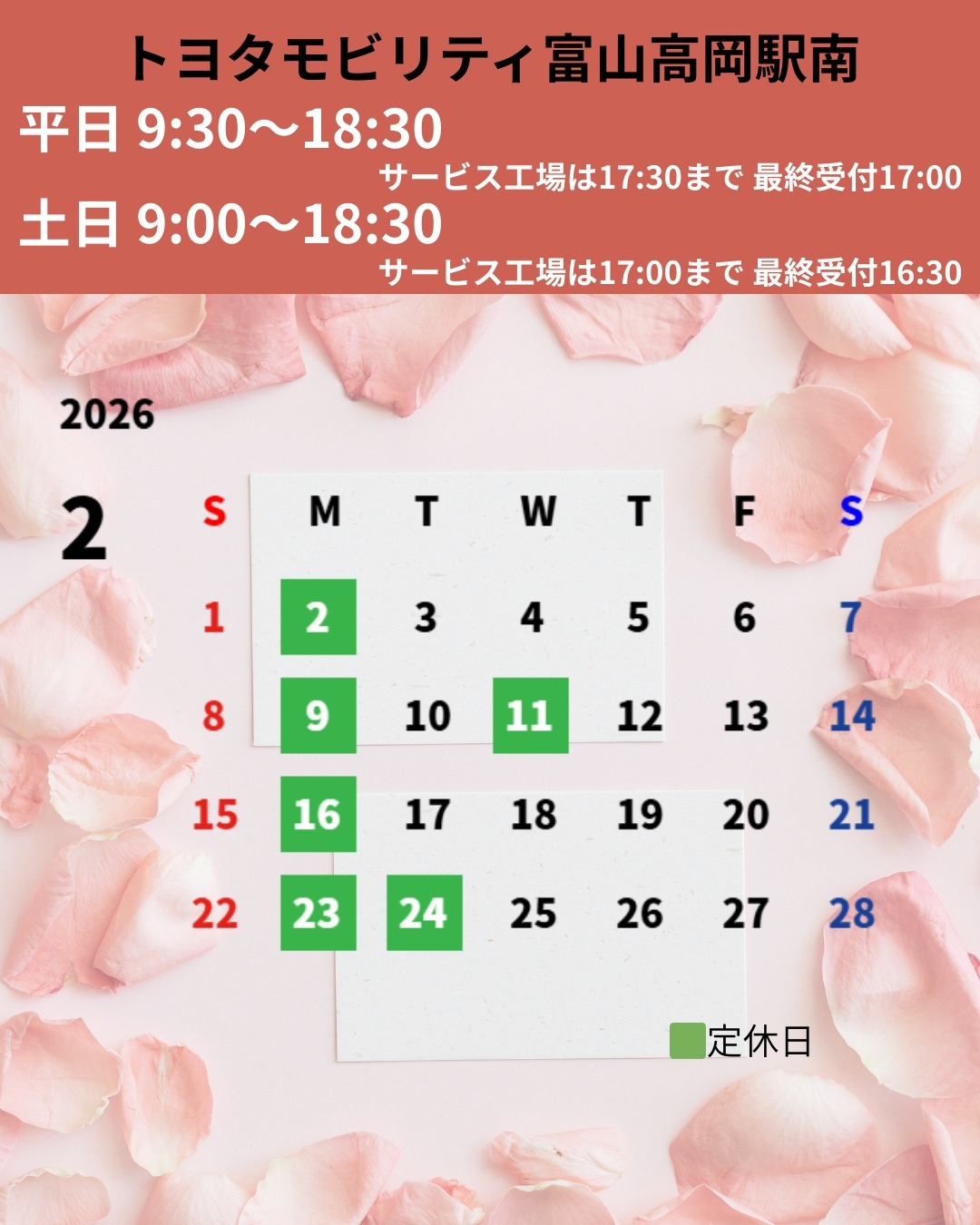 誠に勝手ながら、2月の定休日は毎週月曜および