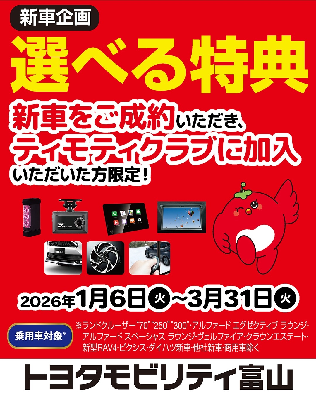 今月も新車企画として3/31(金)の期間中に新車をご成約いただき、