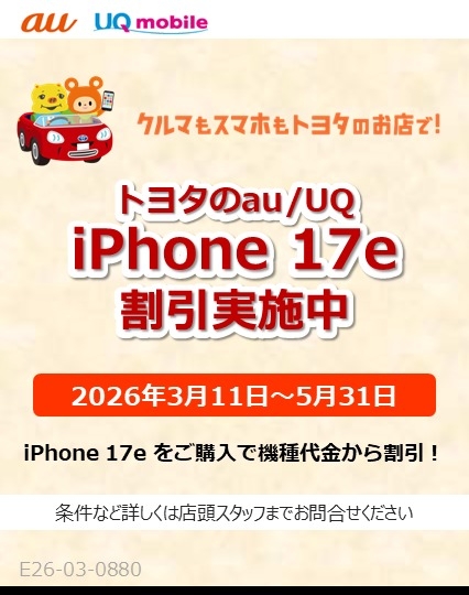 また、現在iPhone17eの機種代金割引を実施中です!!!!