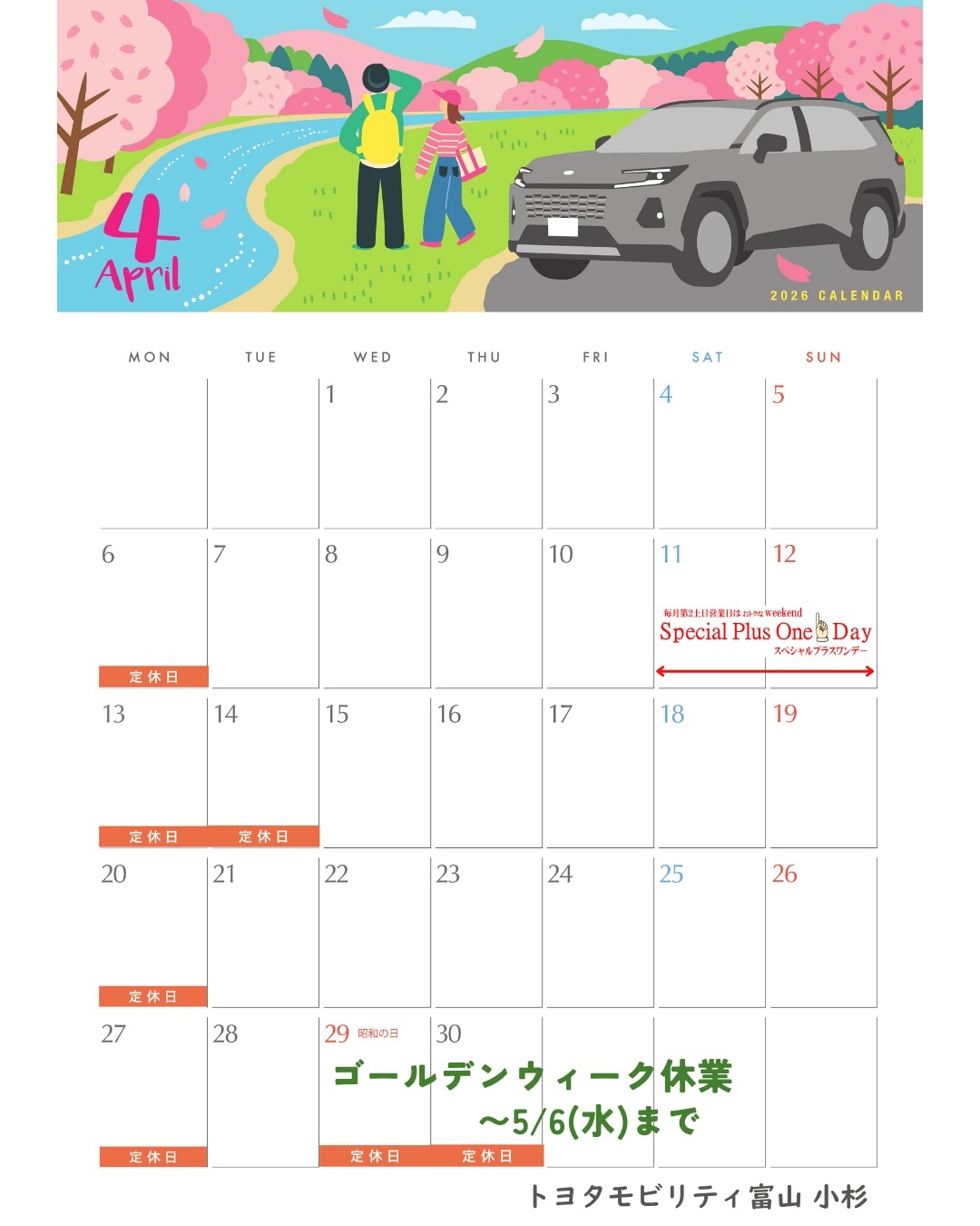 4月定休日のご案内📅