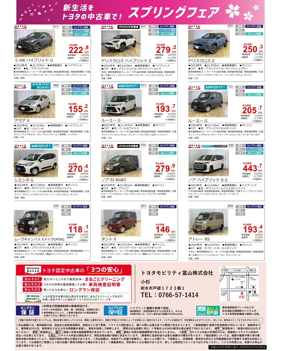 中古車ラインナップ🔎(高岡9台・小杉3台)