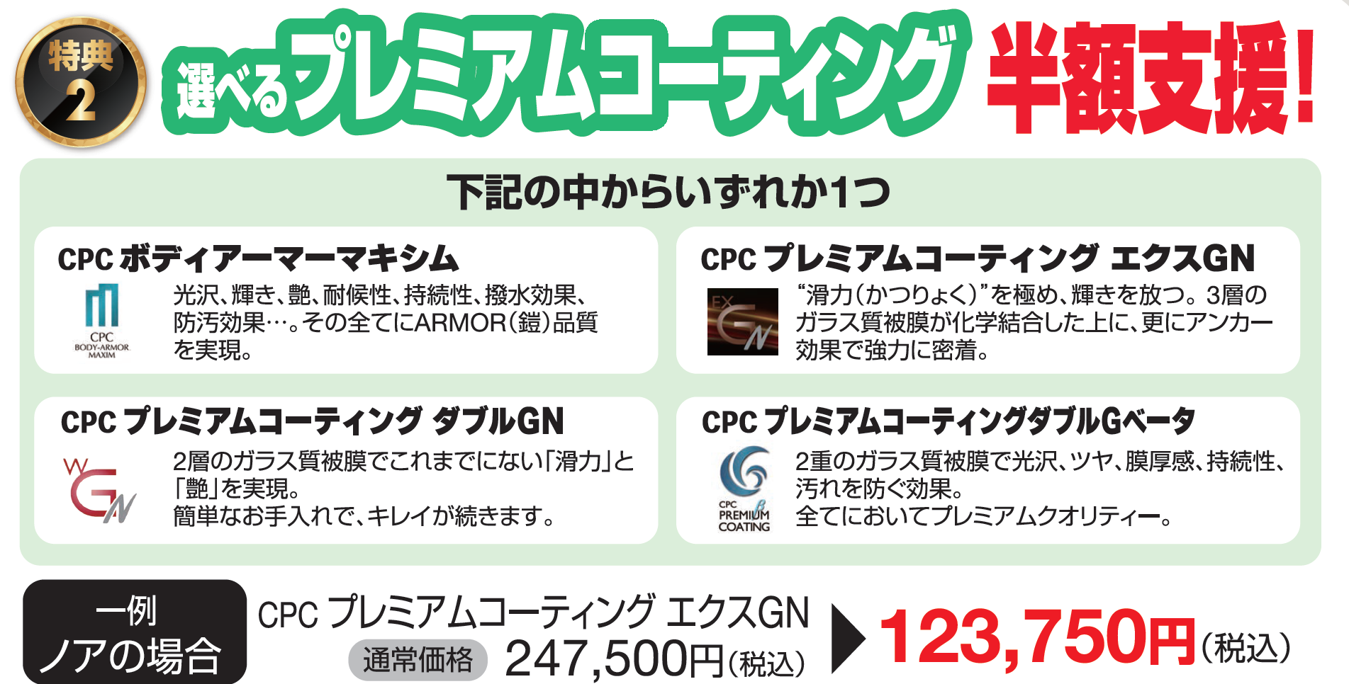 期間中、ノアまたはヴォクシーの新車をご成約いただいた方限定でキャンペーンを実施!