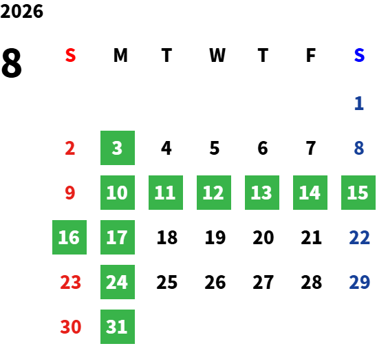 【定休日】毎週月曜日 その他営業日カレンダーをご確認ください