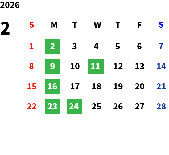 【定休日】毎週月曜日 その他営業日カレンダーをご確認ください