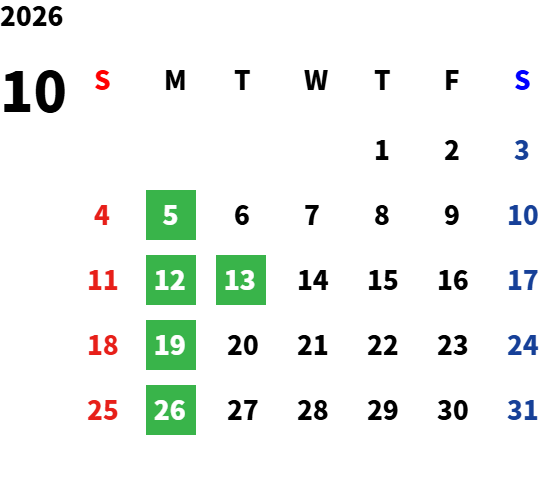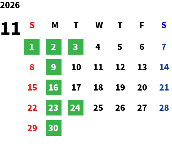 【定休日】毎週月曜日 その他営業日カレンダーをご確認ください